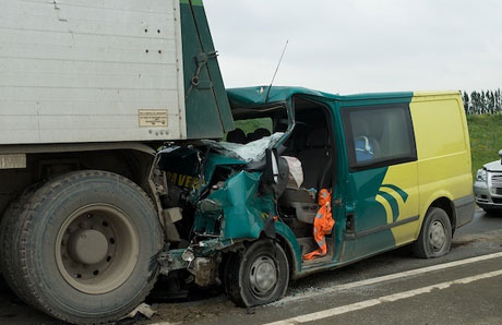 Op de Rhoonse Baan tussen Rhoon en Barendrecht botste een bestelbusje vol achterop een zandwagen.