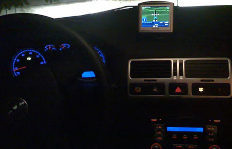 Een automobilist die naar zijn TomTom luisterde en niet goed naar de weg keek, is nogal onfortuinlijk terecht gekomen.