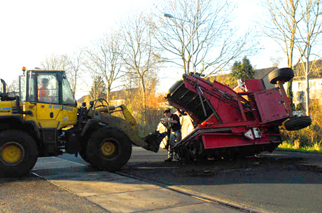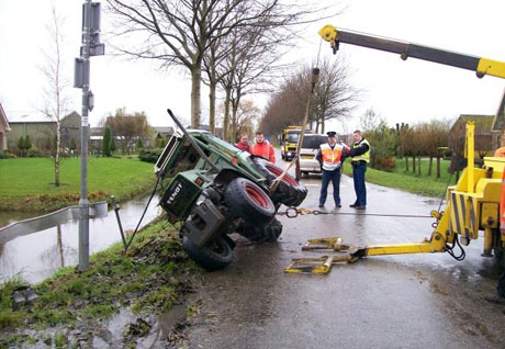 Een aanhanger achter een trekker is maandag rond 14.40 uur gekanteld op de Mr. W. M. Oppedijk van Veenweg in Burgum. De bestuurder van de trekker sloeg hier rechtsaf. In de bocht is de aanhanger kopzwaar geworden waarna deze kantelde.