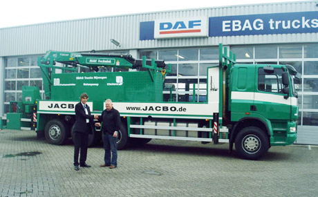EBAG Trucks Nijmegen BV overhandigde onlangs de sleutels van de nieuwe DAF FAT CF85.420, aan de heer Carel Verbrugge, technisch directeur bij V.F.T. Malden BV.