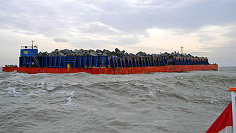 Wagenborg Sleepdienst gaat dinsdagmiddag proberen om de gestrande ponton boven Rottumerplaat vlot te trekken.