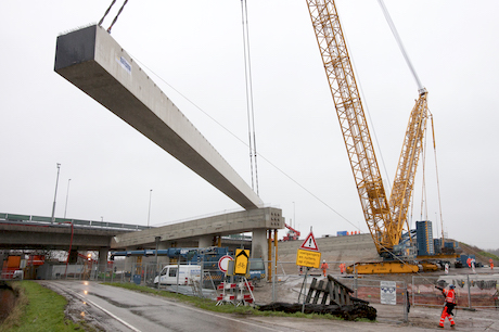 Als onderdeel van de verbreding van de A9 tussen de knooppunten Holendrecht en Diemen worden door het consortium IXAS twee nieuwe bruggen over de rivier de Gaasp gebouwd. Haitsma Beton levert voor beide bruggen enorme voorgespannen kokerliggers, waarvan de grootste een lengte hebben van 57 meter, een breedte van 2 meter en een gewicht van 230 ton. De montage vindt deze maand plaats.