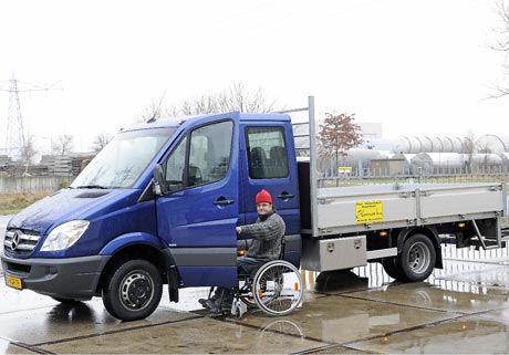 Onlangs heeft Homat Houthandel een nieuwe Mercedes-Benz Sprinter 519 CDI chassis dubbelcabine in gebruik genomen. Bijzonder is dat deze compleet aan eigenaar en bestuurder Henry Rijken is aangepast. Henry heeft namelijk een totale dwarslaesie waardoor hij de Sprinter alleen met zijn handen kan bedienen.