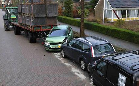 Een bestuurder van een tractor met aanhanger heeft donderdagochtend voor flink wat schade gezorgd. De man reed in De Goorn en verloor door nog onbekende oorzaak zijn oplegger. Deze ramde vervolgens drie auto's die links van de weg in vakken stonden geparkeerd.