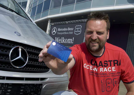 Frank de Jong is de gelukkige winnaar geworden van de "Vito tankt gratis" actie van Mercedes-Benz. De door het promotieteam aangebrachte Mercedes-Benz sticker op zijn Volkswagen leverde hem een tankpas ter waarde van 500 euro op.