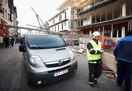<strong>Een man is aan de dood ontsnapt in het centrum van de Belgische gemeente Putte. Het slachtoffer werd op een haar na geraakt door een vallende kraan van zo'n twintig meter hoog.</strong>