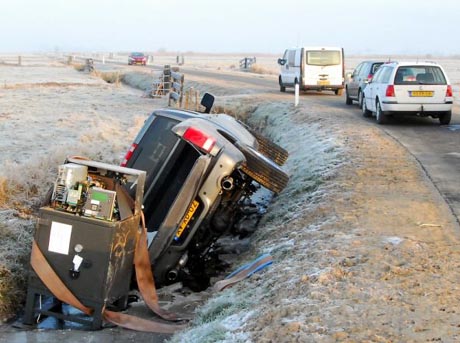 De Rabobank in Vollenhove is op oudejaarsdag, om 05.00 uur in de ochtend, bezocht door ramkrakers. Met een grote shovel haalden de daders de pui aan de voorkant van het bankgebouw er volledig uit. Doelwit was de geldautomaat.