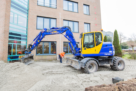 Henny Rietveld Bestratingen in Alphen aan den Rijn heeft een Terex TW110 compacte mobiele graafmachine in gebruik genomen. Met de kanteldraaiconnector is de bandenkraan flexibel inzetbaar.