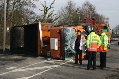 Asfaltwagen gekanteld na uitwijkmanoeuvre
