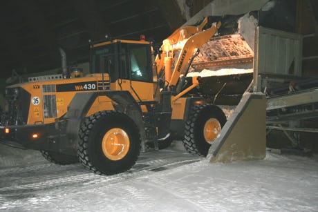 <strong>Werken met zout stelt andere eisen aan een wiellader dan werken met grond. In Hengelo bij AkzoNobel hebben ze daar jarenlange ervaring mee. Sinds een half jaar met een duo nieuwe Komatsu WA 430 shovels. Goed beschermd tegen corrosie. De klant is tevreden met het materieel en de leverancier is er trots op.</strong>