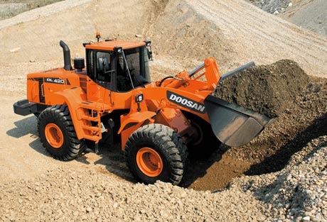Doosan showt met de DL 420 de vervanger van de DL 400 wiellader. Deze machine heeft een eigen gewicht van 22,3 ton en wordt aangedreven door een 10,8 liter, 6 cilinder Cummins met een motorvermogen van 209 kW/284 pk bij 2000 toeren; maximumkoppel 1480 Nm bij 1400 toeren.