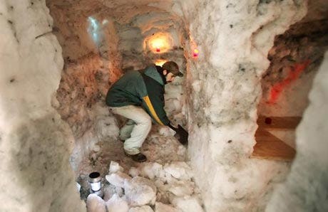 De 26-jarige Jimmy Grey uit Aquilla (Ohio VS), die al anderhalf jaar geen werk meer had en zich zo verveelde dat hij iets om handen zocht, heeft in de tuin van zijn huis een gigantische iglo gebouwd.