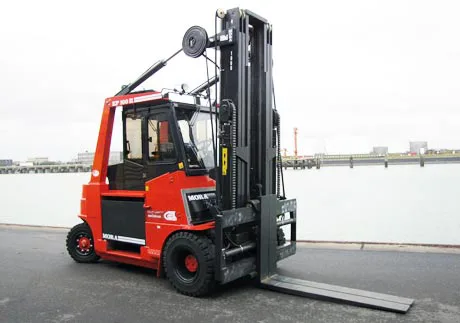 Onlangs heeft Feyter Forklift Services twee Mora elektrische krachtpatsers geleverd aan Finsa BV te Vlissingen. De imposante 10 tonners zullen worden ingezet om opgeslagen houtproducten vanuit de opslag in de loods naar de vrachtwagens op de kade te transporteren. De machines vervangen bij deze werkzaamheden een duo Nissan 7 tonners, voorzien van roetfilter.