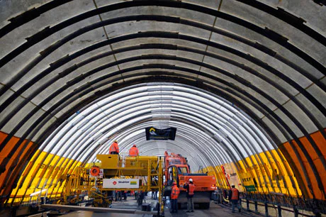 <strong>Wegwerkers hebben afgelopen vrijdag de laatste meters beton gestort voor het nieuwe wegdek van de Hollandse Brug bij Muiderberg.</strong>