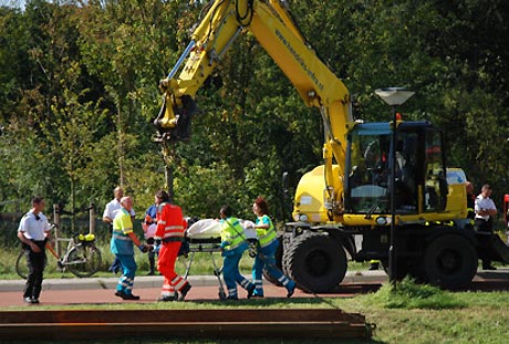Bij een ongeluk met een kraanmachine in Goes is maandagmiddag een persoon ernstig gewond geraakt.