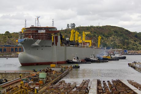 Twaalf maanden na de kiellegging van de sleephopperzuiger 'Leiv Eiriksson' bij een Spaanse scheepswerf, werd het schip op 4 september te water gelaten.