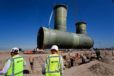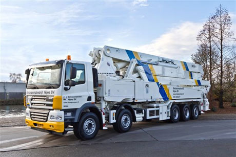 <p style="text-align: center;"><small>Foto: Jan Jonker (Betoncentrale Twenthe)</small></p><a href="http://www.vanderspek.nl" target="_blank">Van der Spek Vianen</a><p><strong> heeft een Putzmeister BSF 52-5.16 HLS in gebruik gesteld bij Betonpompbedrijf Nijwa in Hengelo. De pomp heeft een capaciteit van 160 m³ per uur. De reikhoogte van de giek is 48,1 m. Ondanks zijn grote afmetingen is de machine bijzonder flexibel in te zetten en blijft de totale lengte in transporttoestand beperkt tot net geen 14,5 meter.</strong></p>