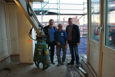 Het pand aan het Rokin 65 in Amsterdam wordt momenteel onderworpen aan een grondige renovatie. Van de huidige gevel blijft weinig zichtbaar, het aangezicht zal drastisch veranderen door gebruik van glasvlakken en hoog gepolijste RVS dakkappen. Om dit te kunnen realiseren wordt zowel inpandig als uitpandig het nodige gestript, waaronder de twee ronde trappenhuizen aan de zijkant van het gebouw.