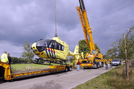 Op een drukke kruising op de Provincialeweg in Someren is maandagochtend een traumahelikopter gestrand.