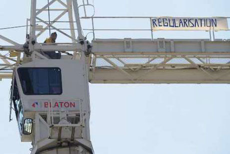 <strong>Ruim dertig mensen zonder papieren bezetten op dit ogenblik zeven kranen in Brussel. Drieëntwintig van hen zitten op vier verschillende kranen op een werf naast het De Brouckèreplein, zeven anderen zijn gisterenmiddag op een kraan geklommen op de hoek van de Emile Jacqmainlaan en de Mechelsestraat. Ondertussen hebben nog eens zes mensen een kraan bezet aan het Schumanplein en zitten een onbekend aantal op een kraan aan het Paleis voor Schone Kunsten.</strong>