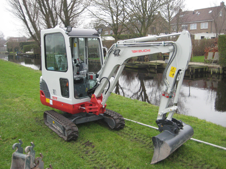Hoveniers en loonbedrijf M.J. de Jong uit Bergambacht heeft een nieuwe Takeuchi TB219 in gebruik genomen. De 2-tons machine is uitgerust met lange lepelsteel en diverse andere extra's.
