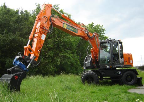 Hitachi dealer Pladdet leverde recent een nieuwe Hitachi mobiele graafmachine af, bij aannemingsbedrijf Gebr. Moerland BV in Sint Annaland.