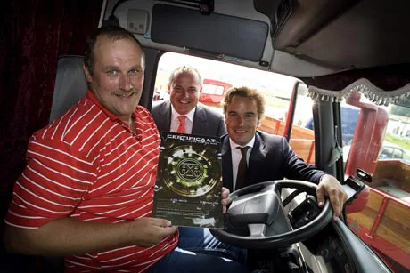 Beroepschauffeur Martin van Os (43) uit Wijk bij Duurstede reageerde blij verrast toen hij volkomen onverwacht door minister Camiel Eurlings van Verkeer en Waterstaat werd gehuldigd als Gouden Ridder van de Weg 2009. TVM verzekeringen zet als grootste gespecialiseerde transportverzekeraar van de Benelux ieder jaar een chauffeur die minimaal tien jaar zonder schade gereden heeft in het zonnetje.