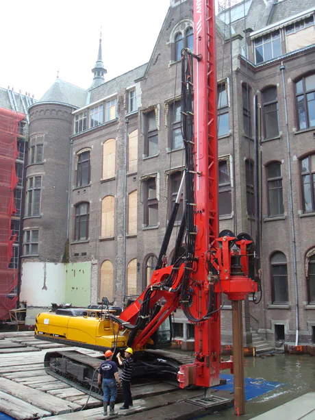 <strong>Op de Intermat beurs in Parijs, verkocht Meerman Sany bv onlangs aan de Gebr. van 't Hek bv uit Z.O. Beemster, een Sany SR 250 boorstelling met hydraulisch omklapbare mast, geschikt voor het maken van schroefmortel palen (20m) en voor verdringende buispalen.</strong>