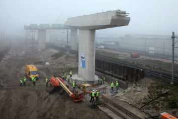 Tussen knooppunt Raasdorp en de A10 wordt de Westrandweg (A5) aangelegd. Eén van de viaducten die in de weg komt te liggen is 3,3 km lang en daarmee het langste wegviaduct in Nederland. Afgelopen dinsdag 15 november is met succes de laatste dwarsligger - soort steunbalk - over de goederenspoorlijn in anderhalf uur geplaatst. Met deze techniek is voorkomen dat tijdens de realisatie van de passage over het spoortracé het goederentreinverkeer voor langere tijd gestremd moest worden.