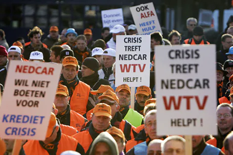 Het Plein in Den Haag stroomt na de actie van Nedcar- en DAF medewerkers langzaam leeg. Ongeveer duizend man riep vrijdagochtend het kabinet op om snel maatregelen te nemen tegen de gevolgen van de kredietcrisis.