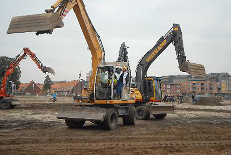 In Enschede is woensdagmiddag is de aftrap gegeven voor de bouw van de Creatieve Campus. Dat is een plek waar ondernemers bijzondere panden neer mogen zetten. Ze krijgen veel vrijheid van de gemeente. De Creatieve Campus is te vinden in de wederopbouwwijk Roombeek, op de voormalige plek van bierbrouwer Grolsch. Om dat creatieve te benadrukken is de bouw begonnen met dansende bouwmachines.