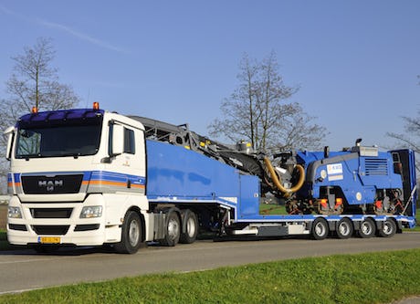 De nieuwste generatie MCOS semi-diepladers met hydraulische besturing vormt volgens fabrikant Nooteboom de optimale transportoplossing om middelzware machines tot circa 47 ton snel, kosteneffectief en veilig te vervoeren.