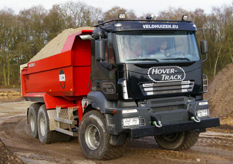 Als alternatief voor gelede-dumper of trekker met kipper heeft Veldhuizen een Hover-Track ontwikkeld met vaste kipper. Deze Maxxim 350 heeft een laadvermogen van 35 ton. <strong><br> Er is gekozen voor cabine, motor, chassis en assen van een Iveco Tracker met een 13 liter cursor motor van 440 PK met koppel van 2200 Nm.</strong>