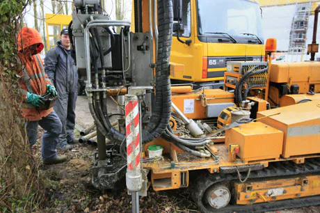 Regelmatig wordt uit de bodem monsters genomen om de conditie van de grond en van het grondwater te controleren op vervuiling. SBTM boort hier in opdracht van de gemeente Lochem op 40 meter diepte. De Multi Sonic kan boren en hoogfrequent trillen om door bepaalde lagen heen te komen. Later worden de monsters in een laboratorium onderzocht.