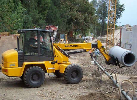 Om een pallet net wat verder weg te zetten of een bak zand net wat verder weg te storten heeft Ahlmann de telezwenklader ontwikkeld.