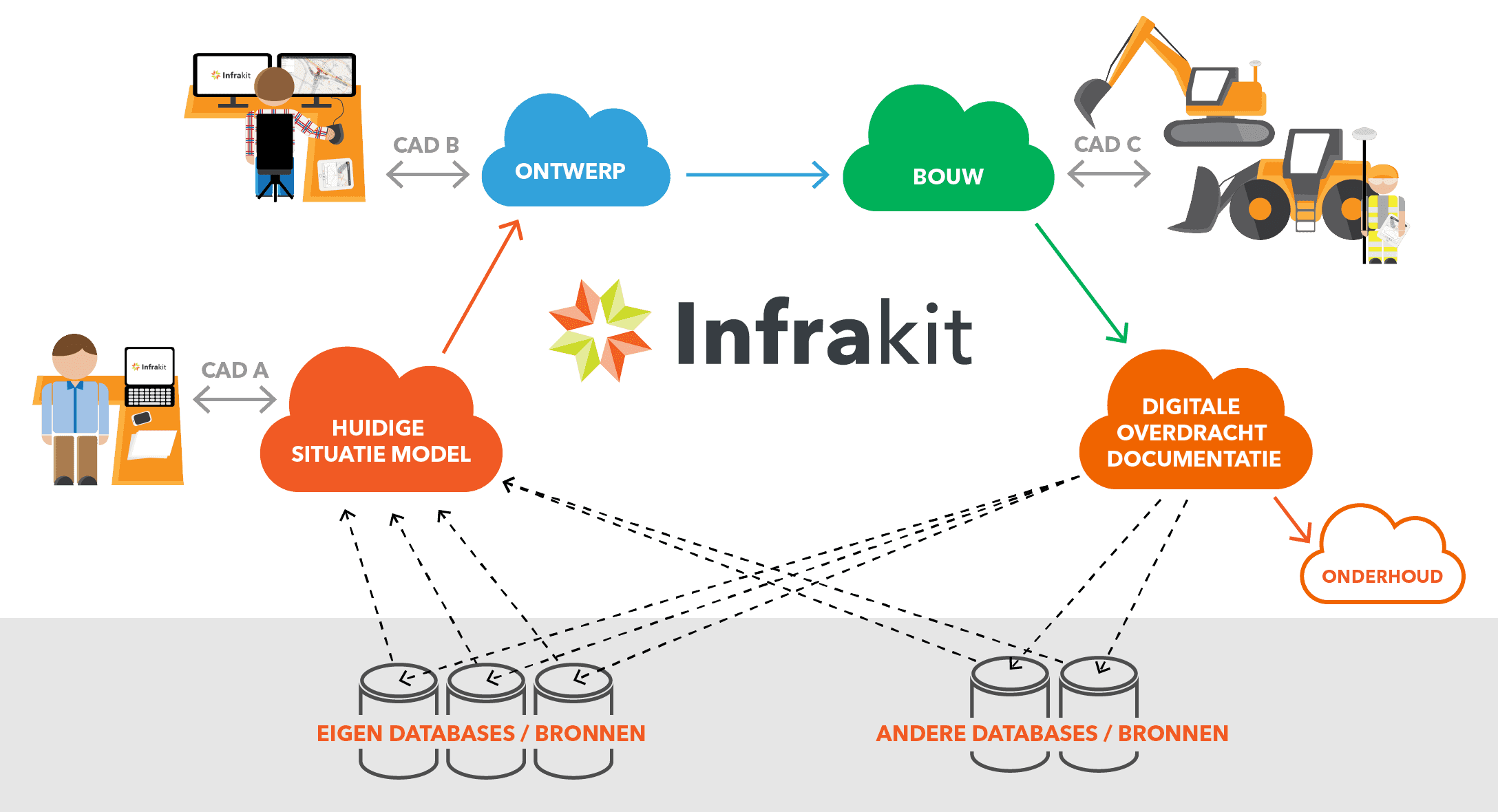 In de bouw werken verschillende partijen vaak al bij aanvang van een project samen en beschikken ze over dezelfde informatie. Met Infrakit is dit ook in de infra mogelijk. De oplossingen van vrijwel alle toonaangevende hard- en softwareleveranciers, waaronder die van Topcon, zijn inmiddels geïntegreerd met dit 'InfraBIM'-pakket.