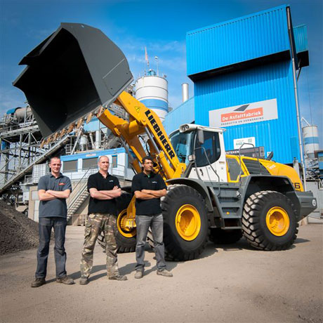 Wim Hendrikx uit Herkenbosch maakte deze fraaie foto van een Liebherr L566 2plus2, geleverd aan Asfaltfabriek Roermond. Machinisten Dave, Mark en Paul (v.l.n.r) zijn 24/7 verantwoordelijk voor de continuïteit van het werk. De asfaltcentrale in Roermond produceert jaarlijks meer dan 200.000 ton asfalt.