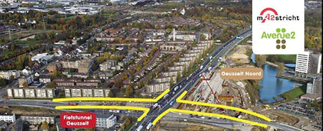 Het asfalt van vier rijstroken van de A2 in Maastricht is vanochtend als gevolg van mislukte ondergrondse boringen omhoog gekomen. Rijkswaterstaat heeft daarna één rijstrook afgesloten.