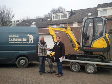 <p style="text-align: center;"><small>De Wacker Neuson vertegenwoordiger in Zuid Nederland (rechts) overhandigt de sleutels aan C. van Oudheusden.</small></p><strong>C. van Oudheusden Bestratingen heeft een </strong><a href="http://www.wackerneuson.com" target="_blank"><strong>Wacker Neuson</strong></a><p><strong> ET24 graafmachine en een BS60-2i benzinestamper in gebruik genomen.</strong></p>